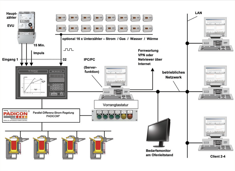 „Mit dem PADICON®-System ist es uns gelungen, die Spitze um 2 MW zu senken. Wir hatten damals einen Bezug von ca. 23 MW der Maximalleistung und fahren jetzt mit 21 MW Leistung. Durch das IBK 800, das dem PADICON®, vorgeschaltet ist, können wir Rückschlüsse auf den gesamten Betriebsablauf ziehen und technologische Abläufe umschichten, um ein Optimum bei den energetischen Abläufen zu erreichen. Das PADICON® selbst ist eine autarke Einheit, die unsere Schmelzöfen steuert. Mit dem IBK 800 werden bei uns aber auch andere Energiebereiche überwacht. Beispielsweise erfassen wir unsere Gas- und Wasserverbräuche. Über freie Ein- und Ausgänge sind auch diese Medien beim IBK 800 aufschaltbar. Die Zähler- und Verbrauchskontrolle bringt uns hier den Vorteil, größere Leckagen rechtzeitig diagnostizieren zu können.“